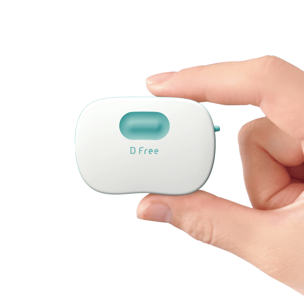 DFreeは超音波センサーを用いて膀胱の変化を捉えることで排尿のタイミングを予測するIoTウェアラブルデバイスです。